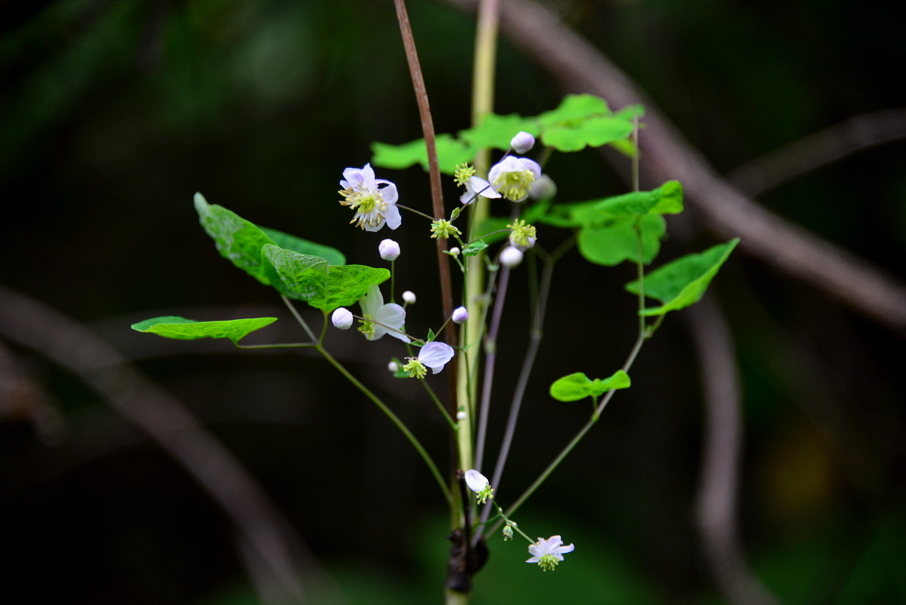 제초작업으로 줄기가 많이 잘려나갔음에도 끝내 두 덩어리 꽃을 피워낸 금꿩의다리 흰색.