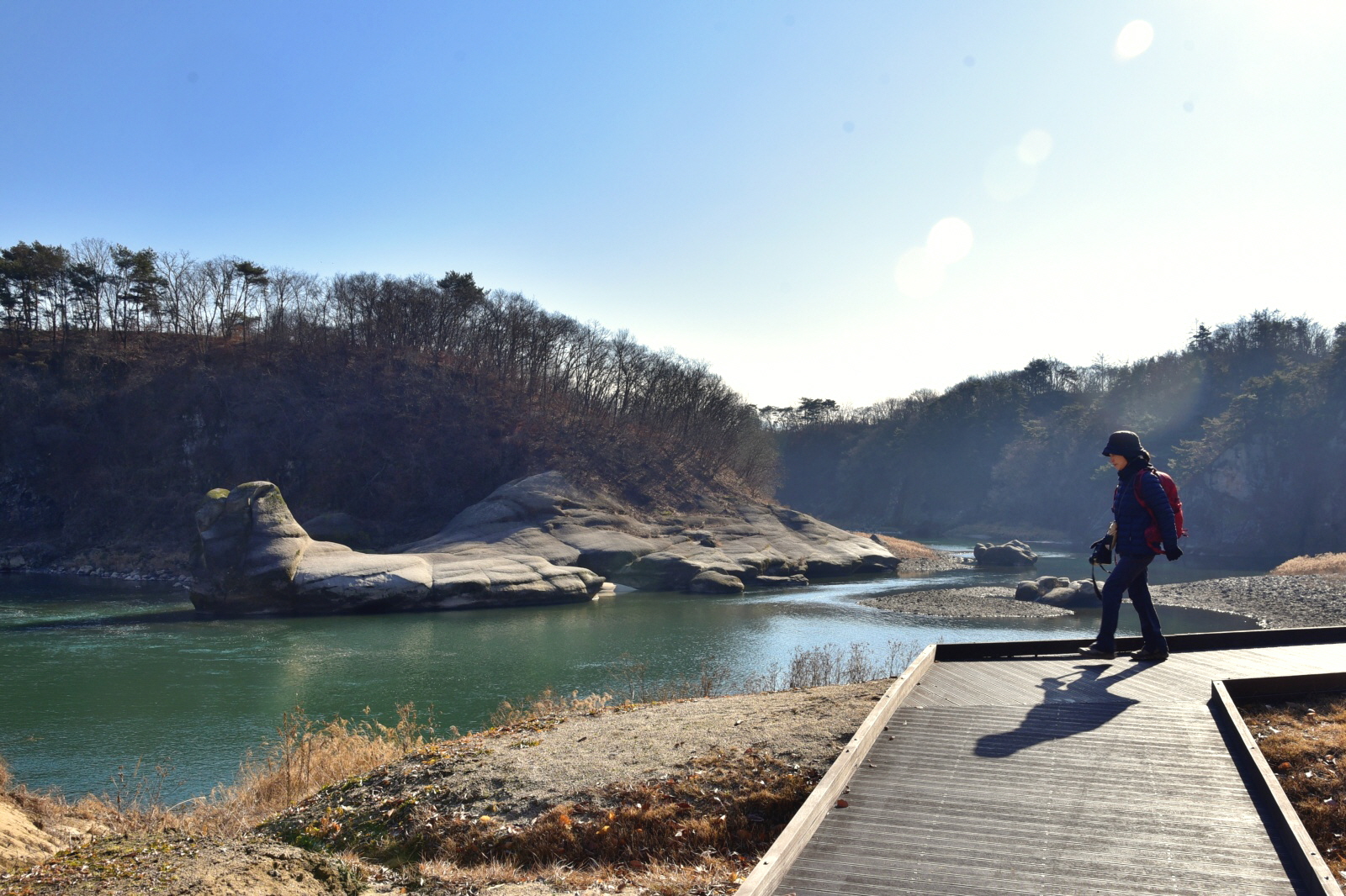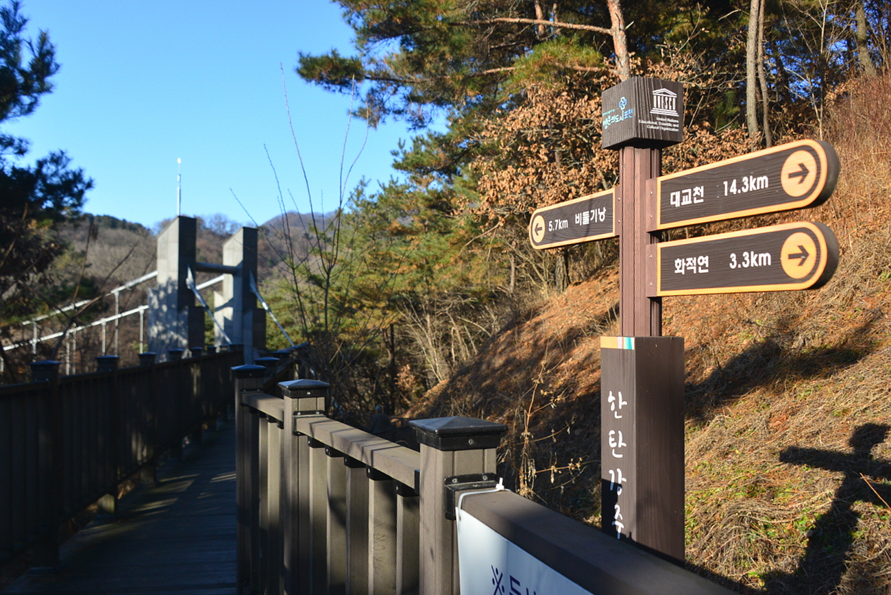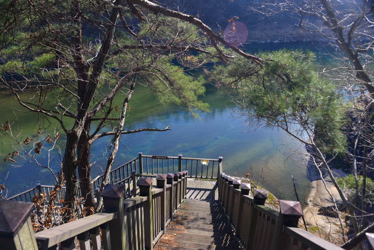 이제 강을 사이에 둔 주상절리길 9코스 양쪽 길을(화적연~하늘다리) 모두 걸었어요.
